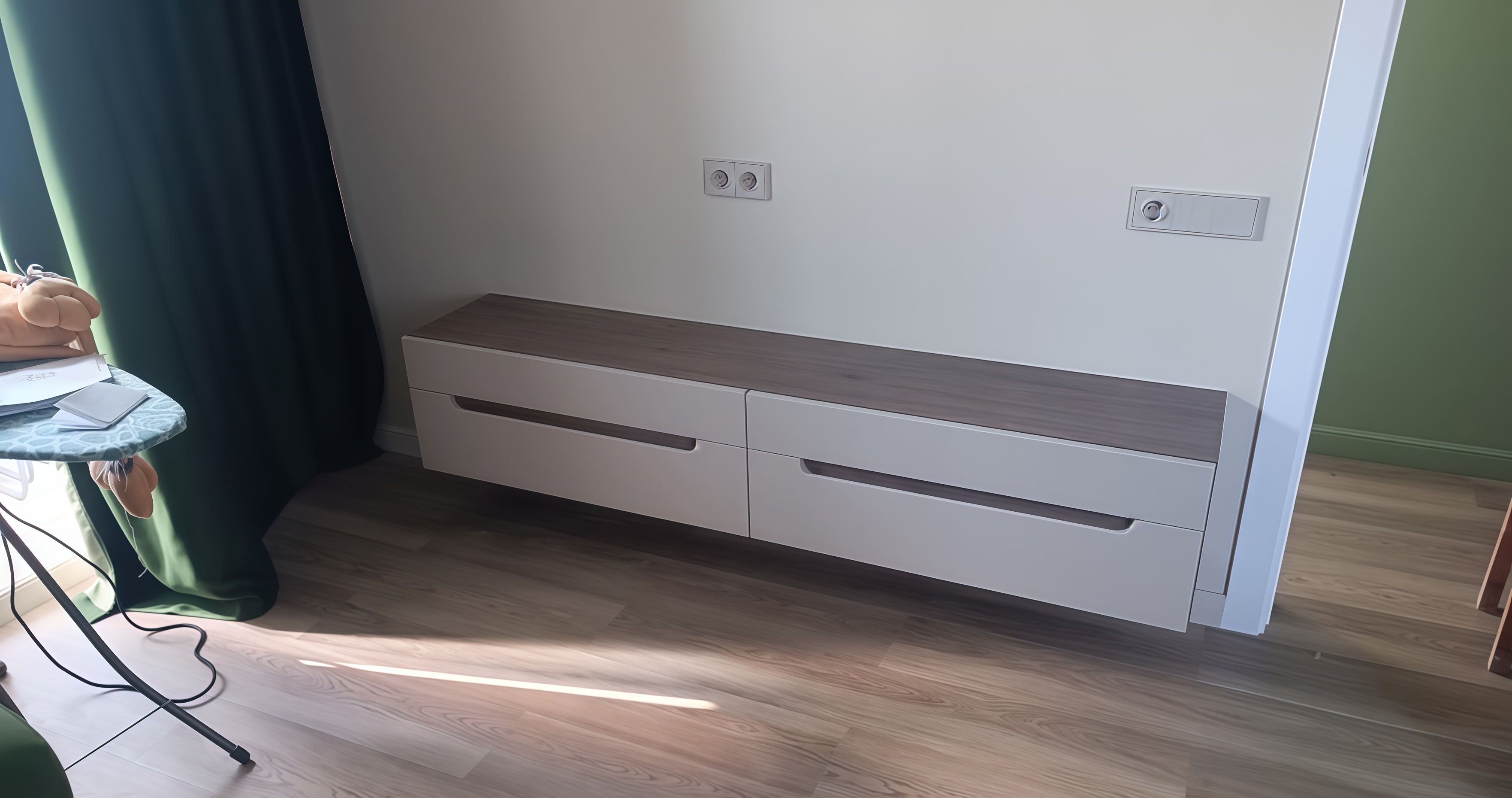- Необходимо крепление тумб к стене во избежание опрокидывания при выдвижении ящиков (в фурнитуре для этого есть крепежный уголок);