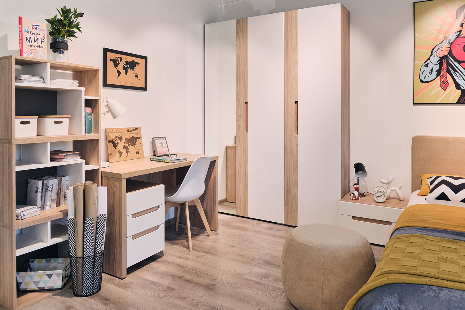 – описание: стиль современный, минимализм, назначение для детской, цвет швейцарский вяз, белый, размер 60.9x40x46 см.