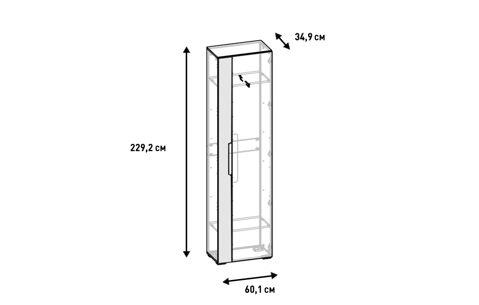 – описание: размер 229.2x60.1x34.9 см, назначение для одежды, стиль современный, минимализм, цвет швейцарский вяз, белый.