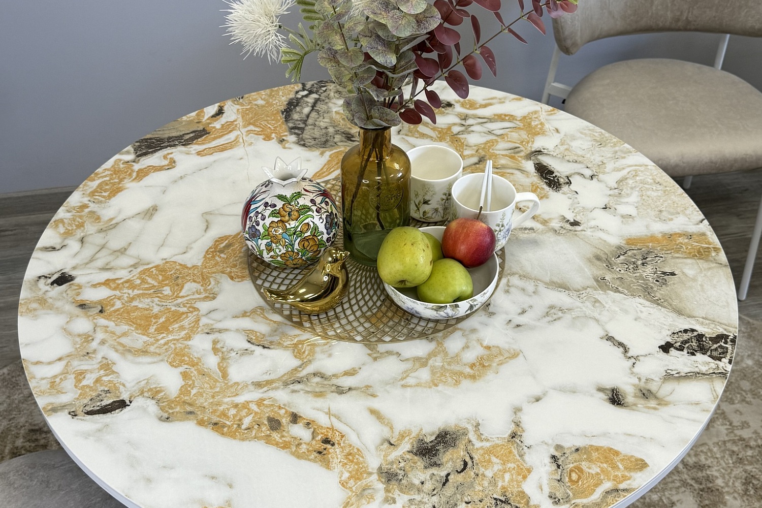 Купить Стол Галло обеденный керамика/гранит золотой глянец в интернет-магазине мебели «Ангстрем»