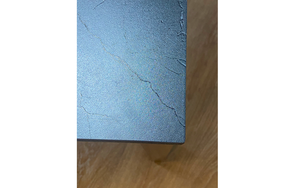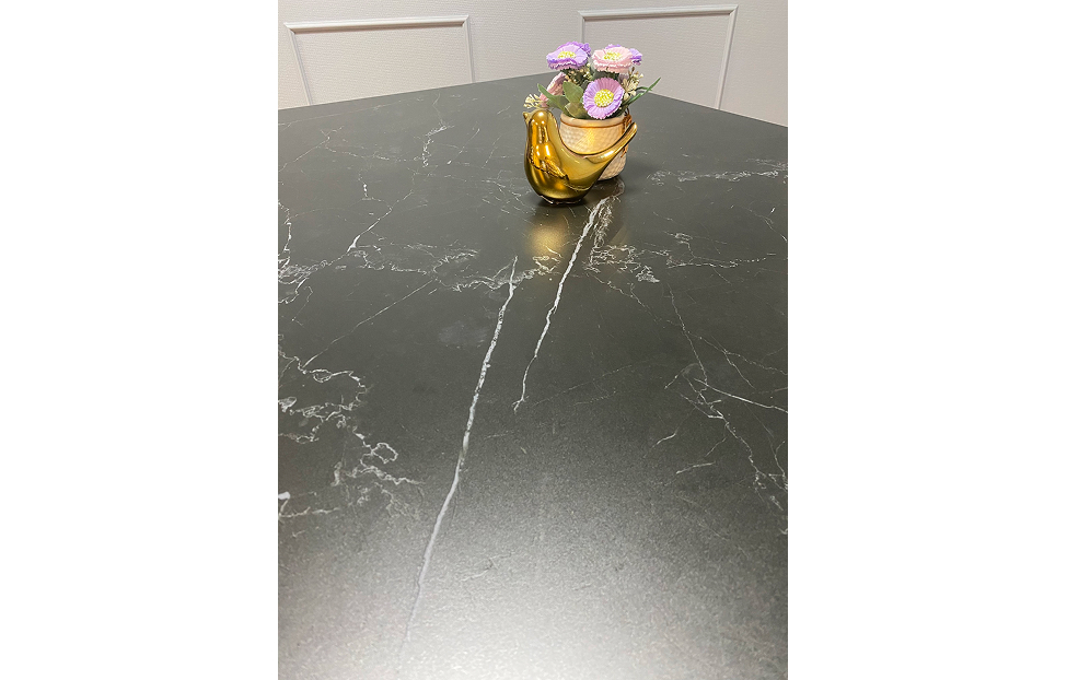 Столешница выполнена из натуральной керамики толщиной 5,6 мм. Керамическая поверхность обладает высокой стойкостью к температурам вплоть до 1000°C, что позволяет размещать на ней даже очень горячие предметы. Благодаря своей твердости, превосходящей металл, она устойчива к механическим повреждениям и царапинам от кухонных принадлежностей. Кроме того, керамика абсолютно инертна к воздействию воды и любых средств бытовой химии.