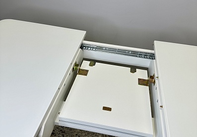 Синхронный механизм раскладки позволяет легко раздвинуть стол одной рукой любому члену семьи. Вставка с материалом столешницы оставляет стол монолитным в разложенном состоянии. Стол максимально устойчив благодаря особому, усиленному креплению опор и регулировочным винтам. Благодаря толстым опорам из массива бука, мощным угловым стяжкам и 2 шпилькам на каждой опоре - стол стоит монолитно на любой, даже неровной поверхности. Для дополнительной устойчивости используются регулировочные винты на концах опор.