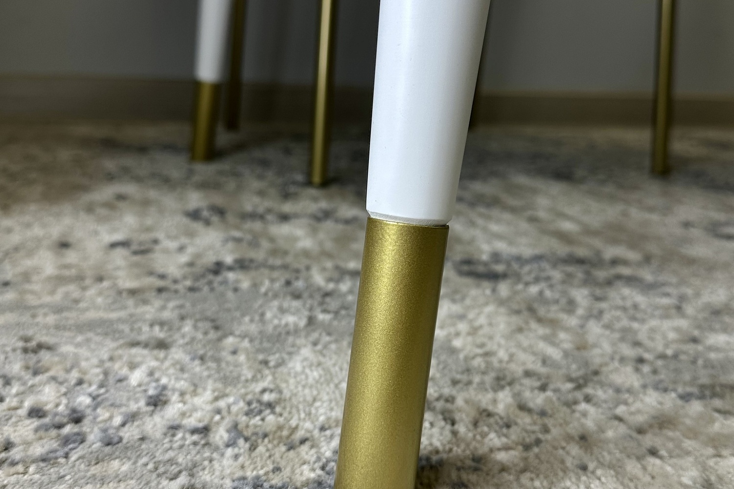 Купить Стол обеденный Мане К1100 опоры белый(зол) / столешница белый сатин в интернет-магазине мебели «Ангстрем»