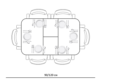 Размер стола компактный и в то же время достаточно вместительный для ежедневного использования 4 человек, по каждой стороне достаточно места чтобы поставить 4 широких стула вокруг стола; механизм раздвижения со стеклянной вставкой позволяет комфортно посадить еще 2 гостей. Компактный и очень функциональный стол, идеален для использования как на небольшой кухне, так и в качестве уютной обеденной зоны в гостиной.