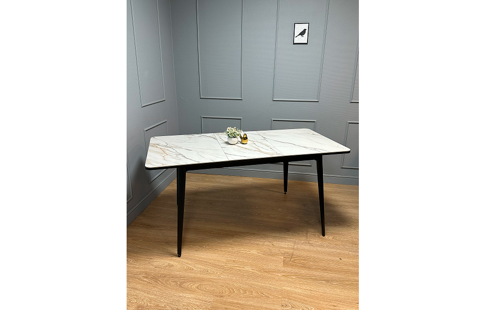 Цена на Стол обеденный Стил раздвижной KS1200 черный/керамика мрамор золотой от производителя , вы можете приобрести в кредит!