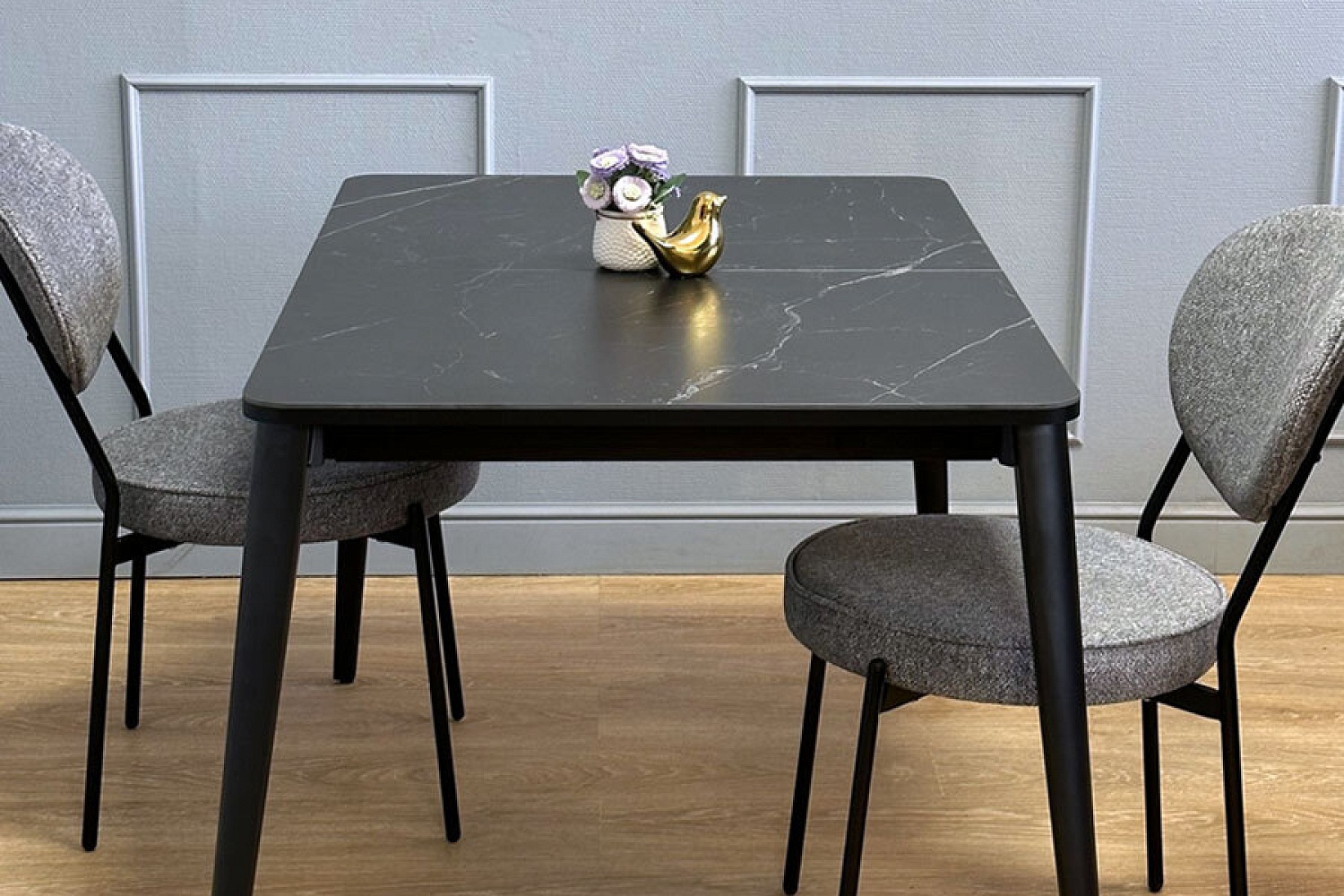 Цена на Стол обеденный Стил раздвижной KS1200 черный/керамика мрамор черный от производителя , оплата наличным или безналичным расчетом!