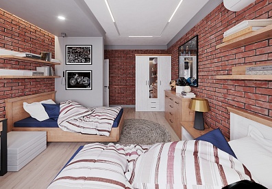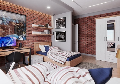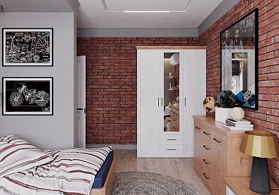 - Мебель выполнена в цвете «Блан Шене» и «Дуб Бунратти»;