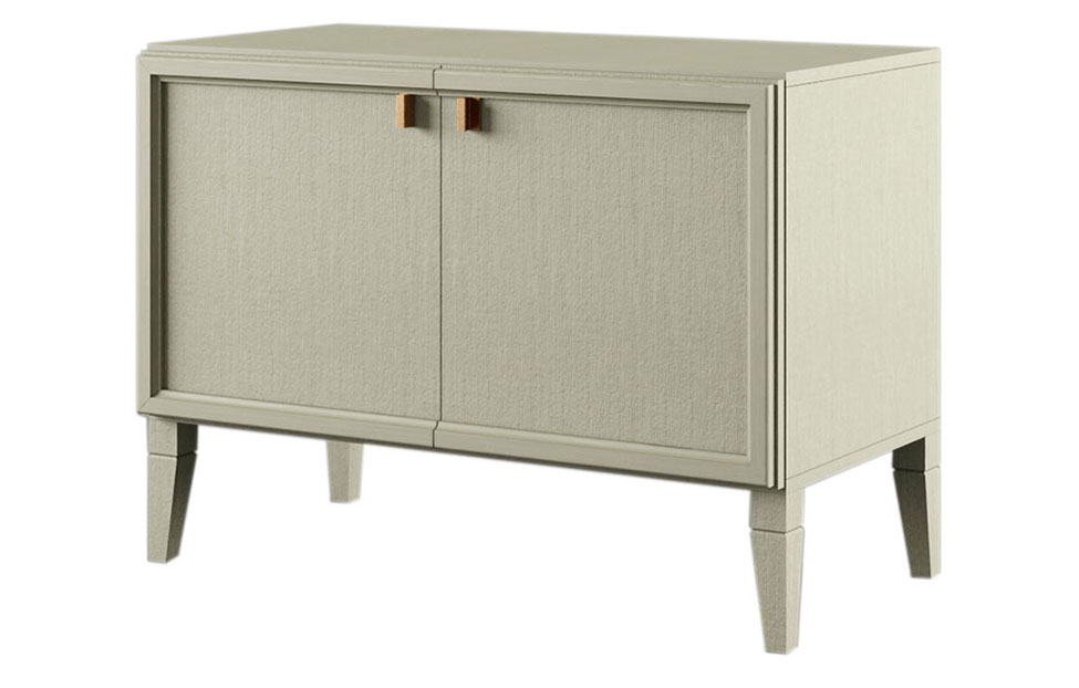 - Тумба метровая, имеет одно отделение со шпонированной внутренней полкой за двумя распашными дверцами;